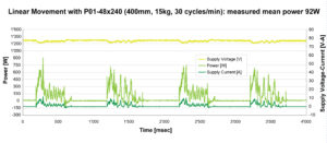 יישום זה יכול להתבצע על-ידי המנוע הליניאירי של LinMot P01-48x240F, בשילוב עם מגבר הסרוו של LinMot E1100-XC/B1100-XC, עם צריכת הספק מתמשכת של פחות מ-100 וואט.