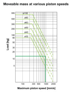 אותו העומס של 15 ק"ג שנע במהירות של 1 מטר לשנייה, יידרש כעת לנוע באופן פנאומטי.